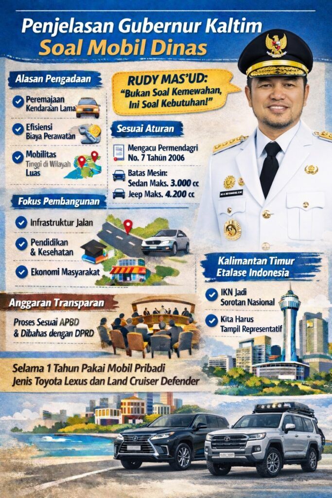 Gubernur Kaltim Rudy Mas’ud menjelaskan, bahwa kebijakan tersebut telah melalui prosedur resmi dan didasarkan pada kebutuhan sesuai regulasi. Bukan berdasarkan untuk kepentingan kemewahan semata.